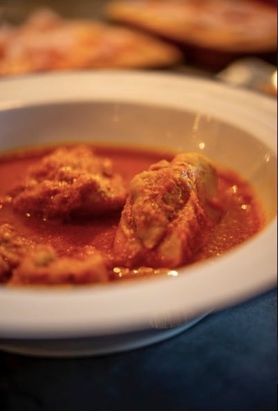 じっくり煮込んでおりますのでお肉が非常に柔らかくなっております。物によって溶けかけていることもございます。